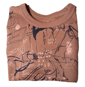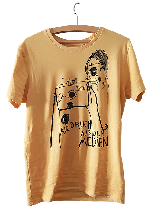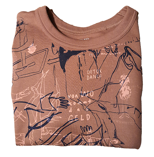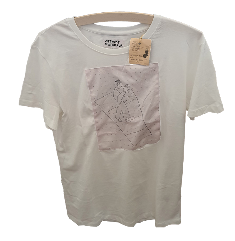 Die Ausstellung mit ihren Archiven und Sammlungen wurde von einer Gruppe von Künstler:innen gemeinsam besucht und aufgrund subjektiver Kriterien konnten Produkte aus den Aktionen und Materialien hergestellt werden. Dabei wurden T-Shirts mit Zitaten, Slogans und Bildern im Siebdruckverfahren produziert und als Give away und Souvenir an die Beteiligten weitergegeben. Taschen und Schürzen mit Motiven der sieben Themenwolken wurden genäht und bedruckt, von den Mitarbeitenden als Arbeitskleidung getragen und auf digitalen Plattformen präsentiert.